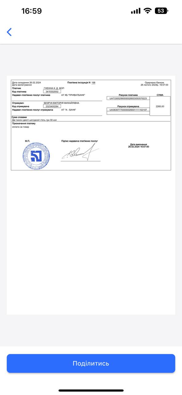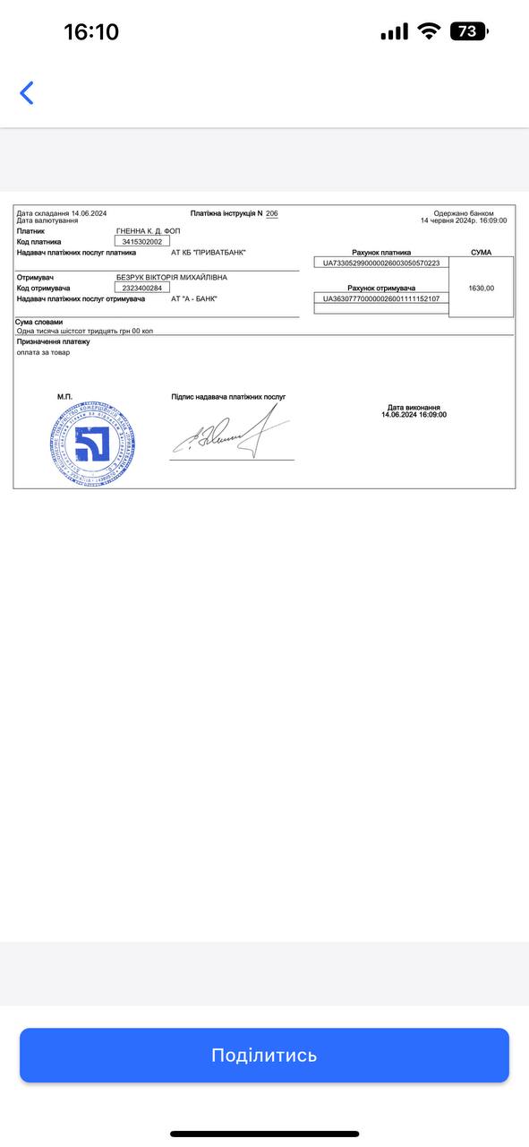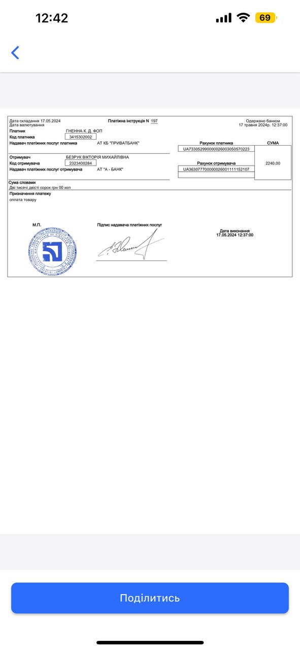 2024-06-05 15:30:56 | 369 cafe: Привезли каву, дякую, завтра внесемо оплату за каву.